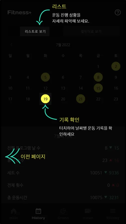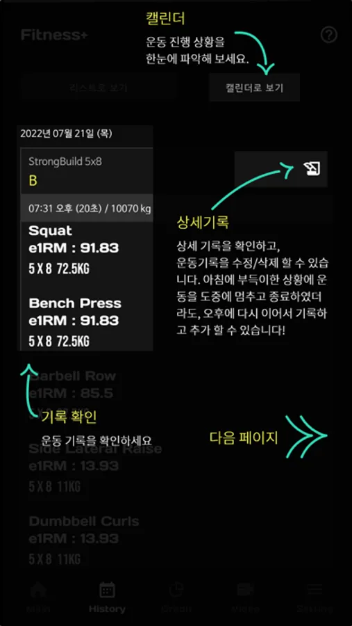 - 히스토리, 캘린더, 그래프를 통한 성과 측정