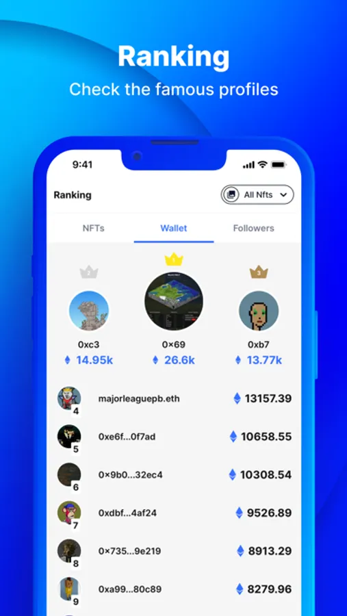 - Check out the leaderboard and work your way to the top. No need to search for who has the biggest wallet or who has the most expensive NFT, you can find all this information under the Ranking tab.