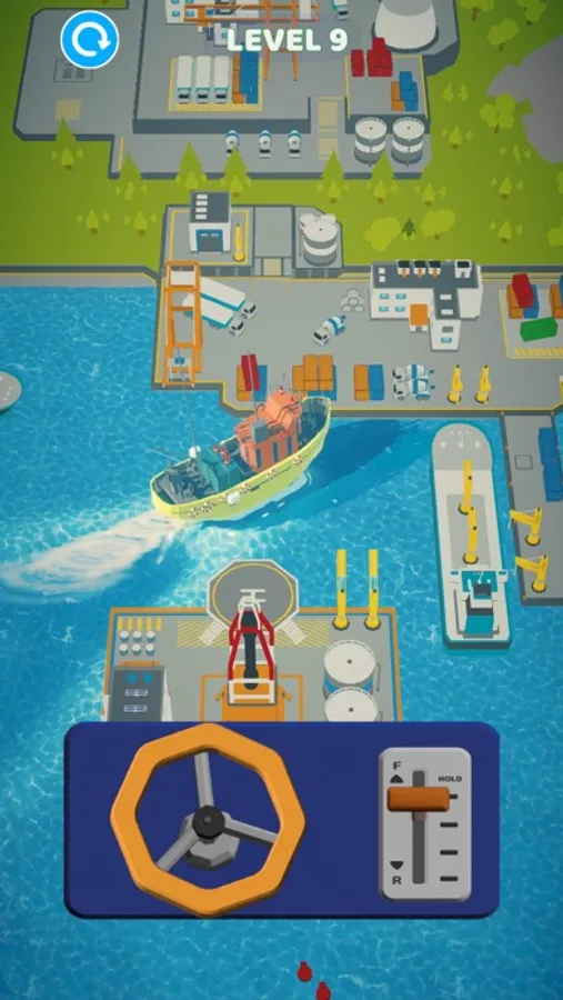 Parking a boat is not simply "a job". It's the dance between a 10.000-ton ship and the waters, and the docks are simply the dancing floor. Feel your ship drifting on the waves, make all the right moves at the right time, and she will be happy at her new home. Take one wrong step, however, and your ship will step on the toes of other ships, or will simply run aground. Each mistake costs you parts of your ships, and probably a loss of your captain's licence. Each successful parking, however, will earn you money and prestige.