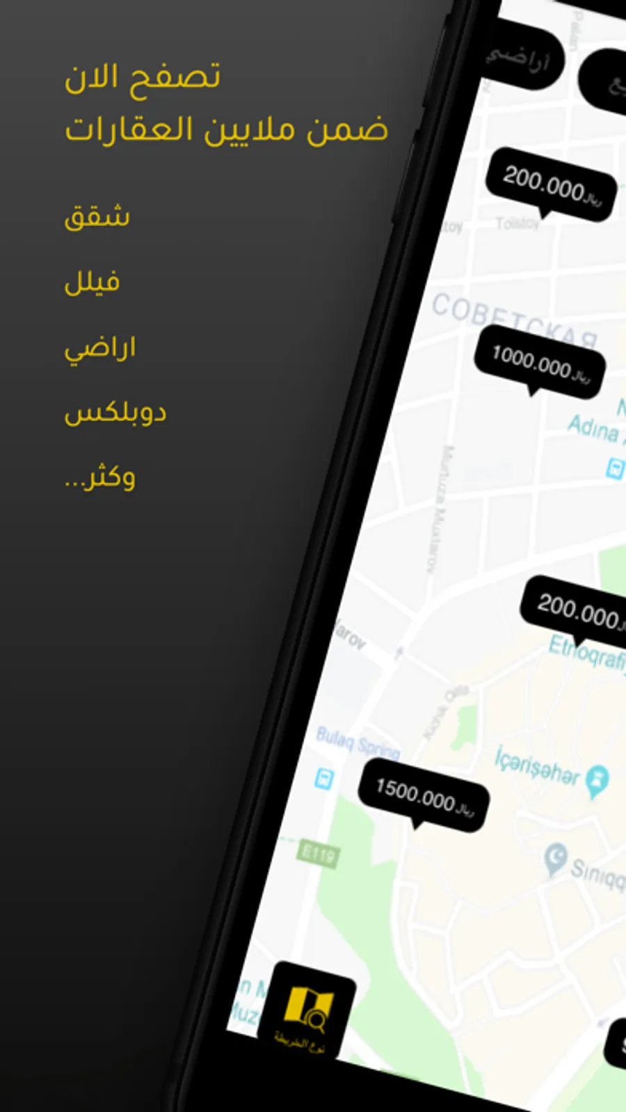تطبيق متخصص في العقار السعودي. يعرض لك العقارات المتاحة حولك باستخدام خرائط قوقل العربية.