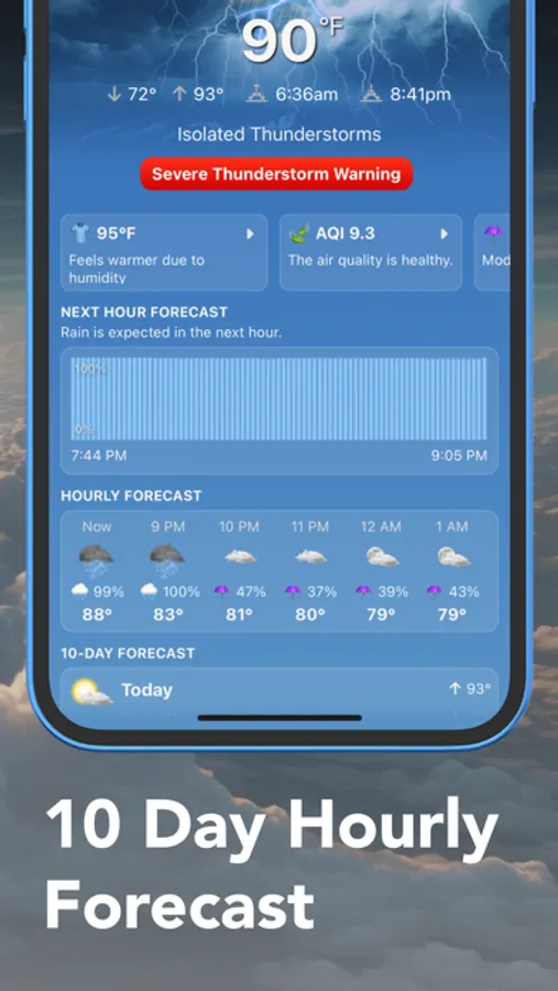 Easy access to Current & Forecasted Weather: Get current weather conditions, such as feels-like temperature and UV index along with next-hour (Minute by minute rain possibility), hourly, and daily forecasts for up to 10 days. In supported regions you will see Air Quality information that will help you stay healthy and monitor particulates in the air.