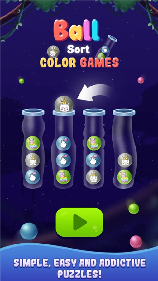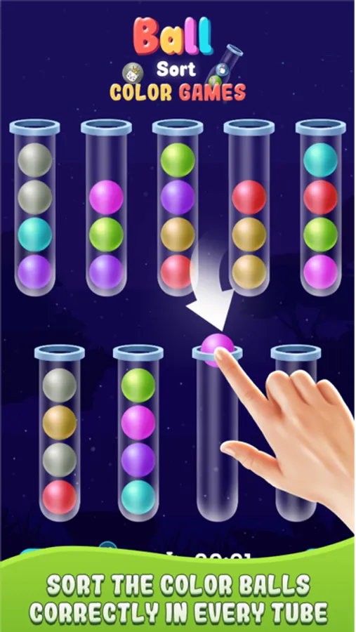 - Tap any tube to move the ball lying on top of any tube into another tube.