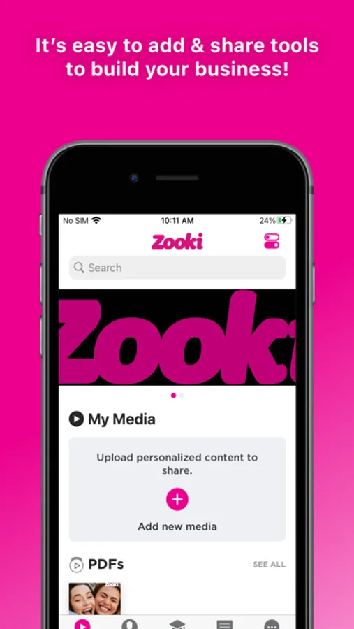 With the Zooki App, you can easily share your way to success with tools that create word-of-mouth buzz and complement belly-to-belly efforts! Connect with new contacts and interact with your team by sharing exclusive, corporate-approved tools. You’ll have a vast array of marketing materials like videos, images, and more—all right at your fingertips! The powerful, yet beautifully simple design, along with compelling tools, makes growing your business simpler than ever.