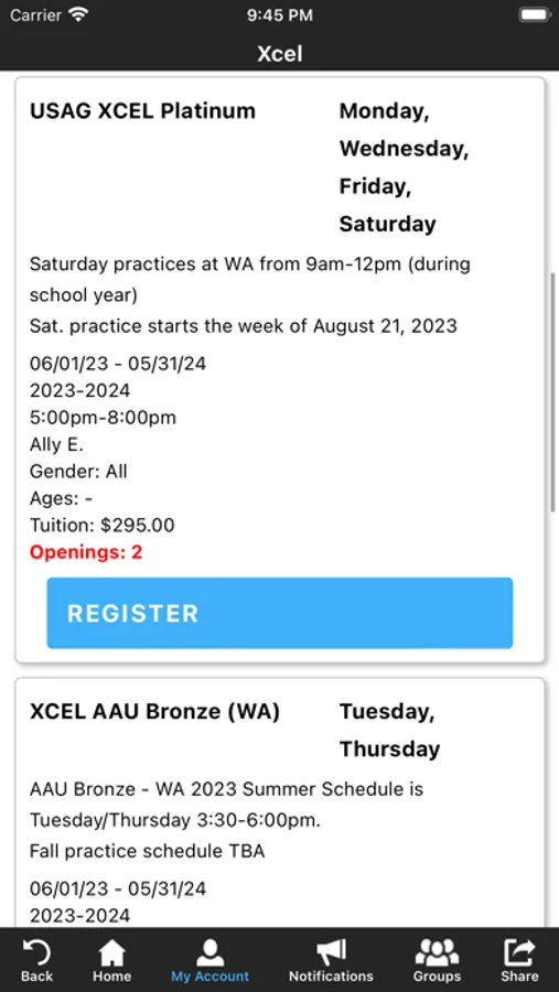 The app allows you to manage your account with ease, register for classes and more! You'll also receive important notifications about class changes, closings, registration openings, special announcements, and upcoming events.