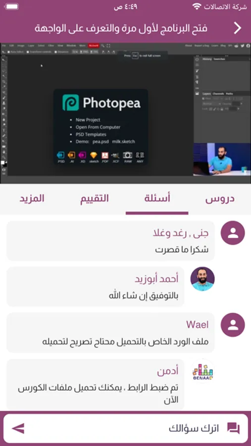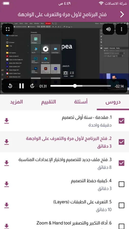 تشغيل دروس الكورس بمشغل فيديوهات متطور
