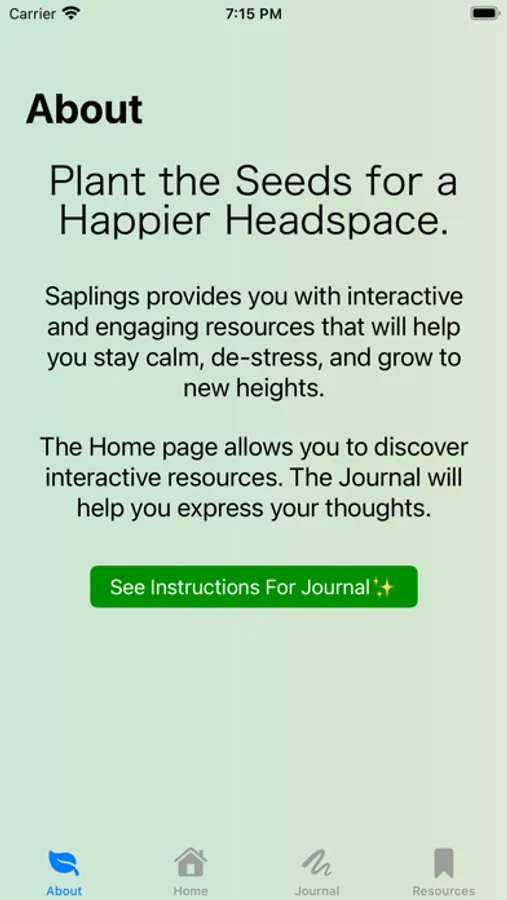 Welcome! Saplings helps you plant the seeds for a happier headspace. It's more than an app--it's a platform that equips you with the tools to manage stress, anxiety, and your mental health in our fast-paced world. Saplings aims to provide users with a wide array of interactive, engaging features, since not everyone copes with stress in the same way. Taking charge of your mental wellness has never been more interactive.