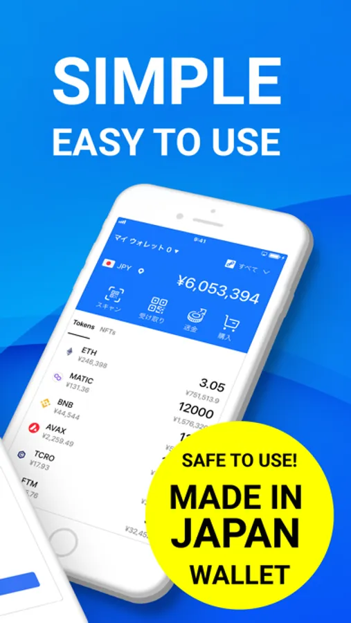 Made in Japan for your peace of mind! We have achieved a simple and user-friendly UI/UX that even beginners can use with ease. In addition to managing various stablecoins, including our issued Japanese Yen stablecoin "JPYW," PassPay allows you to manage multiple cryptocurrencies and NFTs on various blockchains all in one place.