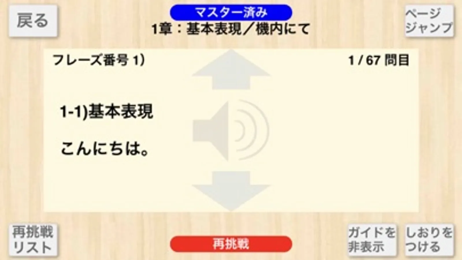 ・日本語から英語の順で再生し、英語が流れる前にで英語を言い当てる訓練をしてください。