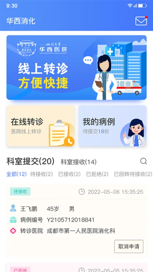 华西消化app是一款互联网协诊手机客户端运用,通过联接不同级别医院医生,帮助消化道出血患者于不同医院就诊后获得高效精准化治疗,协助分转诊,实现对消化道出血的均质化管理。