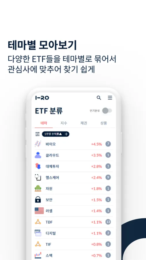 - 상품 찾기 : 국내 모든 ETF 아직도 하나하나 찾고 계신가요? 아이루틴에서 한곳에 모아 편하게 찾아보세요
