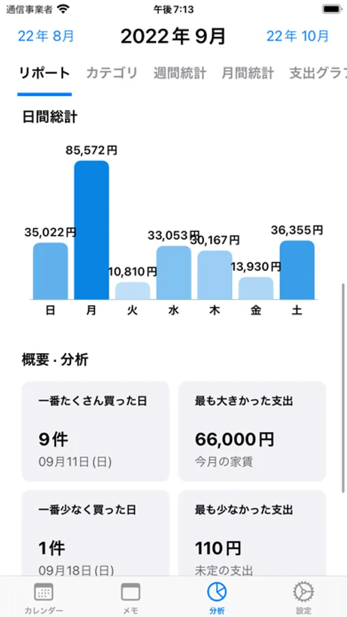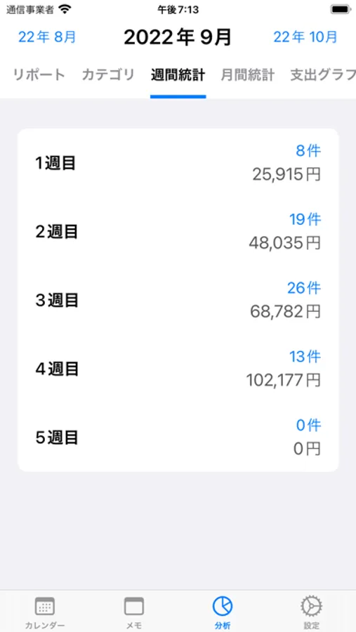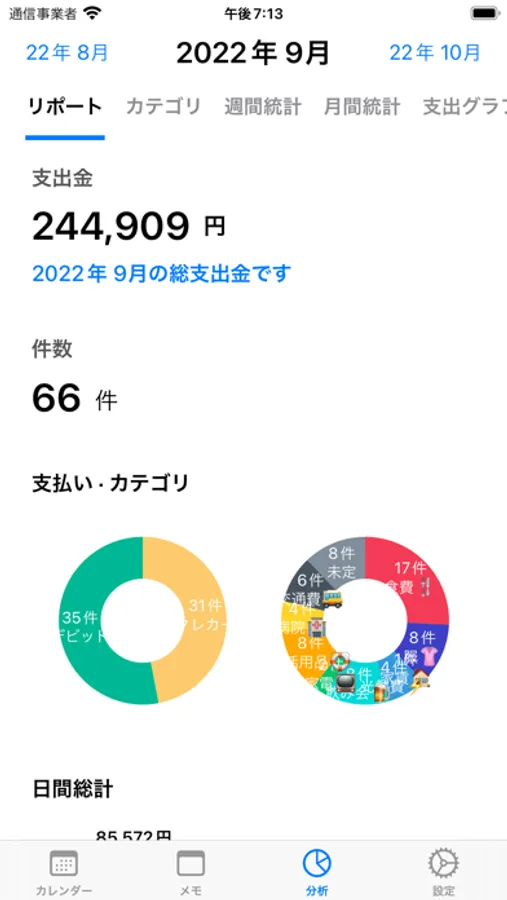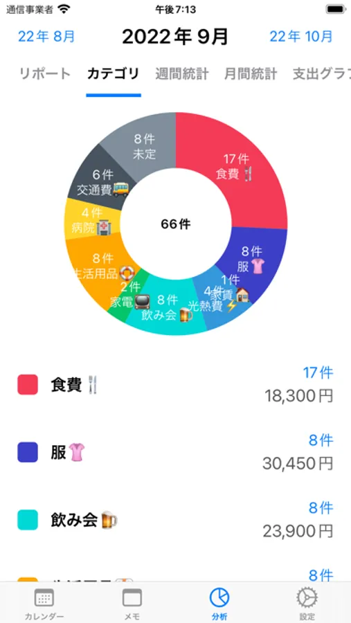 このアプリを使うと簡単に支出データを入力でき、色んなグラフや統計レポートを見ることができます。