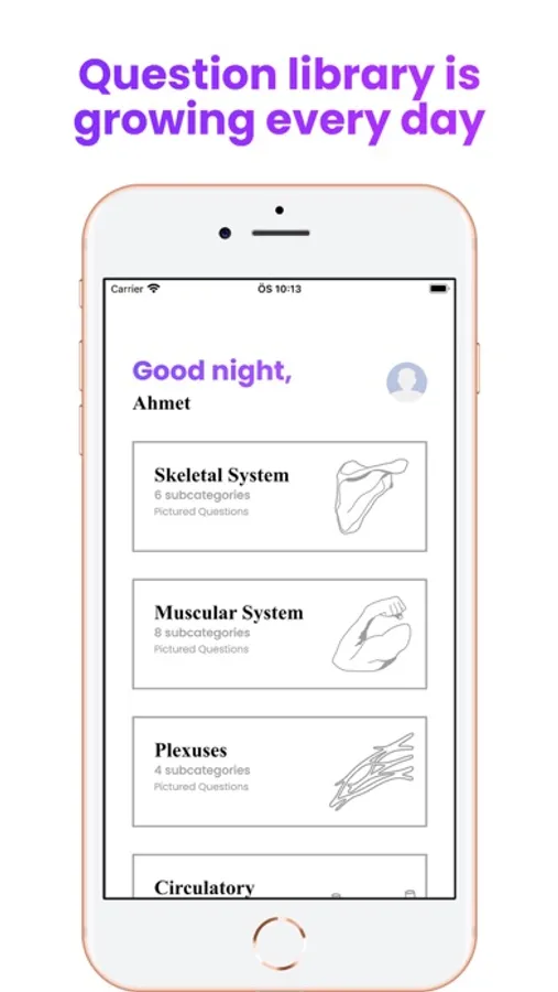 With this app you can learn a lot about human anatomy (structures, systems and more) and test your knowledge.