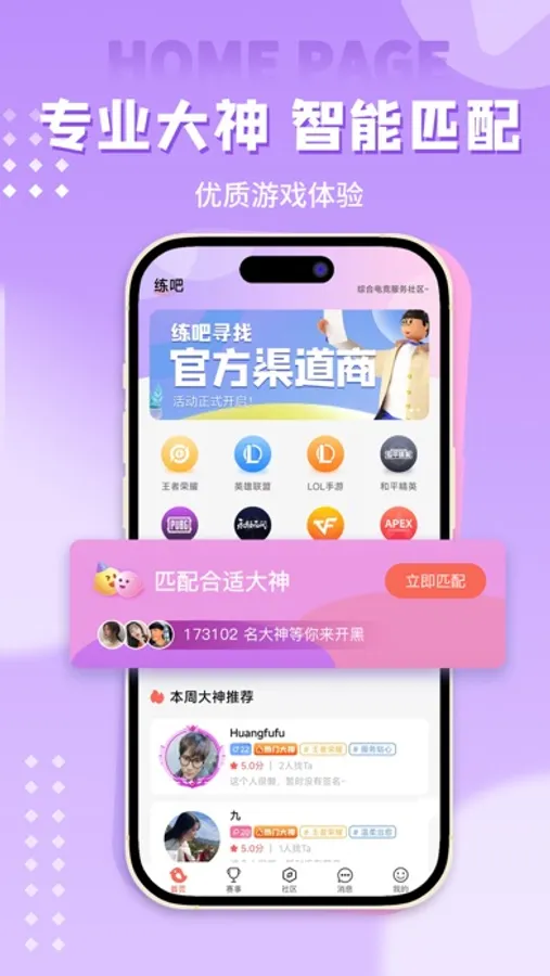 练吧双端口平台极力打造综合性电竞服务生态社区, 游戏大神指导,游戏账号托管,网课考证,电竞职 业技能认定,线上赛约队开黑,线上赛征集报名, 选手招募等电竞服务平台;