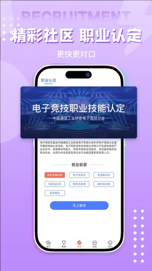 解决行业内用工难、招工难,人员分散问题;建设高质量电竞行业人才信息库;