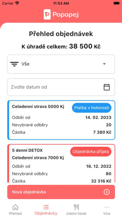 V aplikaci najdete souhrn všech svých objednávek. Pokud jste doposud žádnou neprovedli, krabičky si snadno objednáte i z mobilního telefonu.