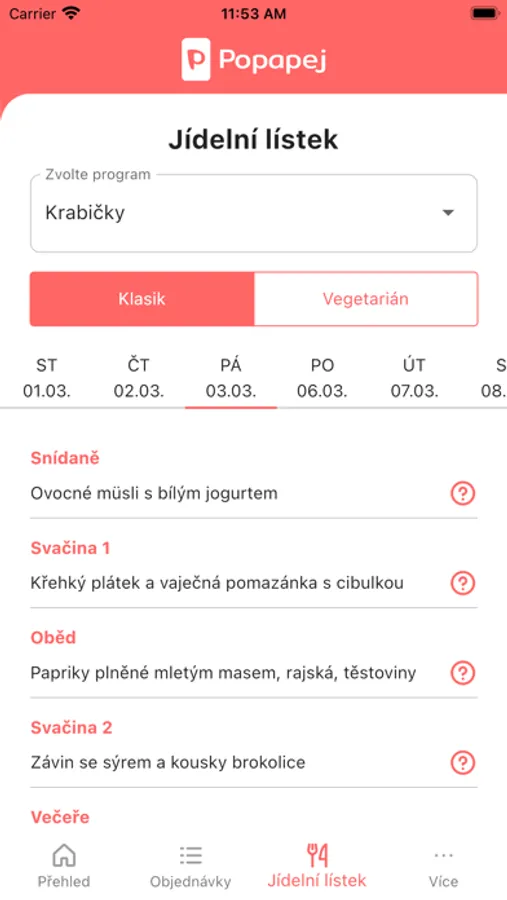 Nastavovat si odběr krabiček a jejich počet na konkrétní dny.