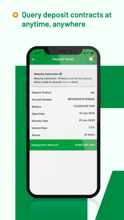 • Manage and query accounts, deposit contracts, review transaction history, easily download full statements at anytime, anywhere.