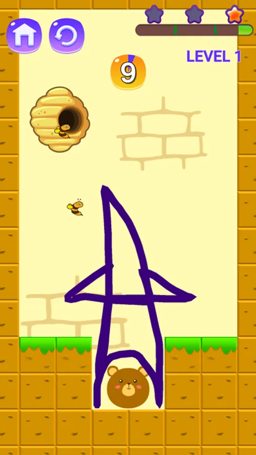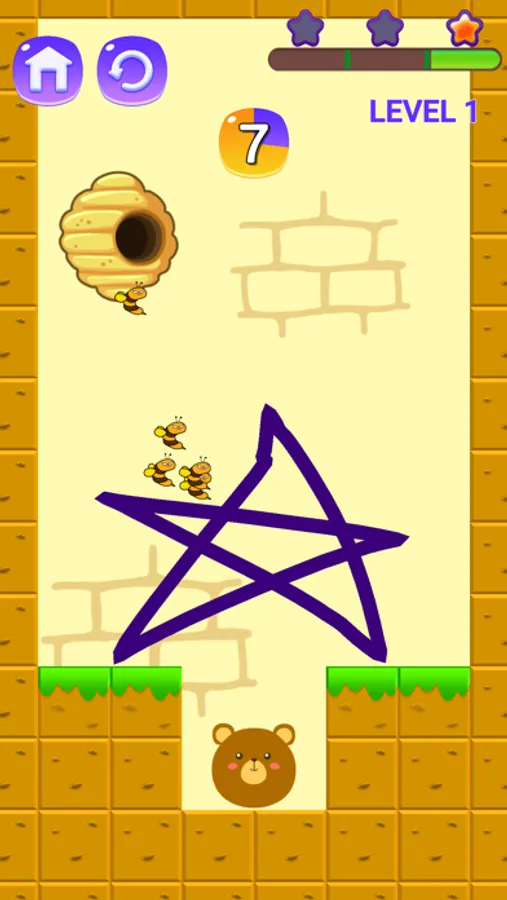Tap to draw line to protect the bear. Easy to play, hard to master. Can you make it?