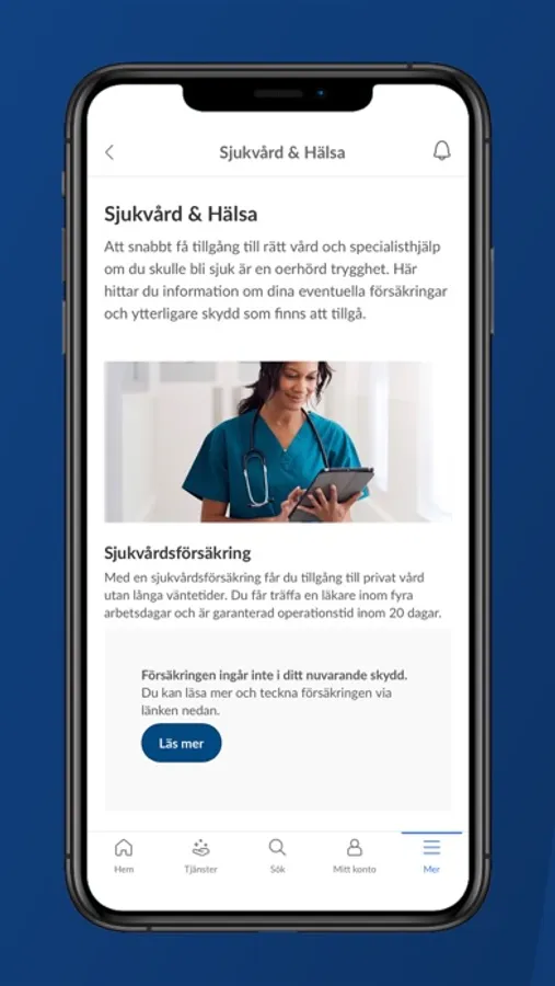 Under Sjukvård & Hälsa finns information om tecknade försäkringar och ytterligare skydd som du kan komplettera med så som sjukvårdsförsäkring, hälsoförsäkring, cancervårdsförsäkring och kritisk sjukdom. Du hittar kontaktuppgifter för respektive försäkring och vad de omfattar.
