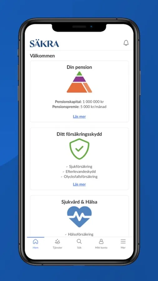 Med Säkra Total har du tillgång till ditt samlade pensions- och försäkringsskydd via Säkra dygnet runt.