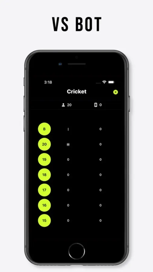 Challenge yourself against Dart Bot by playing games such as 501 and Cricket, or sharpen your skills with a training game.