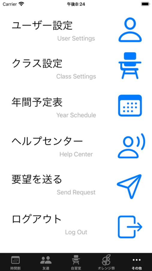 このアプリケーションは、以下の項目により学校生活をより便利にすることができます。以下の項目が主要な機能です。