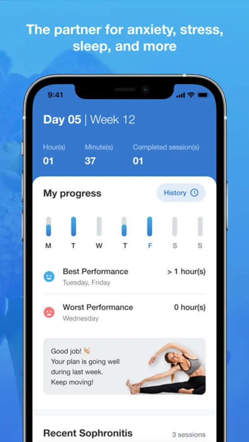 Find your new sessions every week for a varied practice, complete and adapted to your needs and availability. You will also be able to follow your progress and the evolution of your feelings using our “monitoring log”.