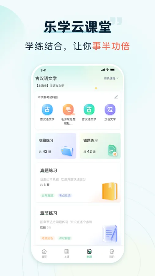 3、乐学题库:提供课程配套练习,依托智能评分系统,让你随时随地刷题,提升学习效率!