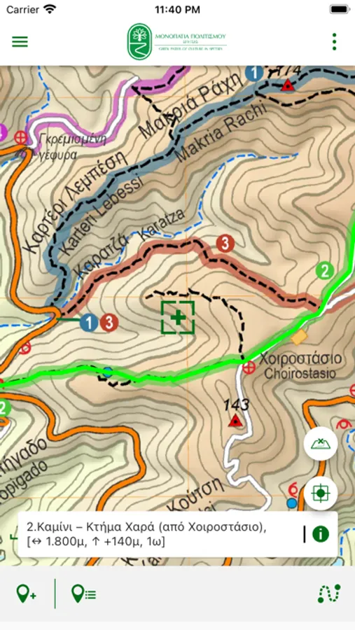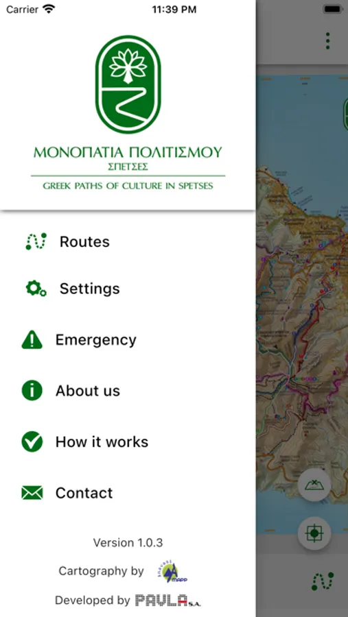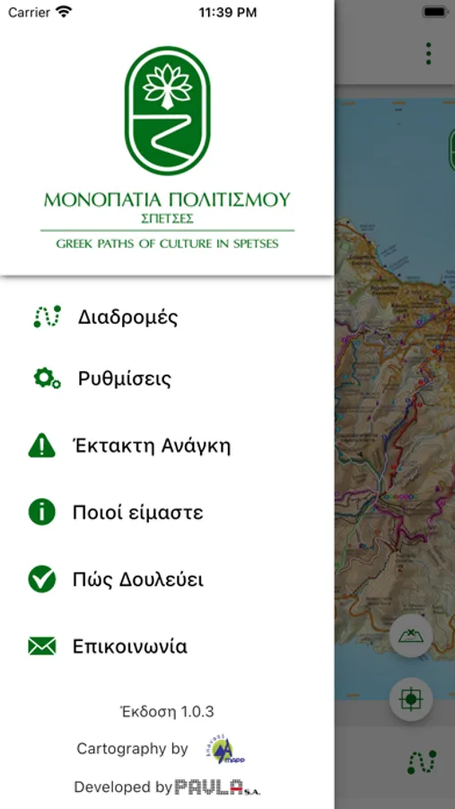 The Spetses Paths app is an offline application that shows the user position on the map without the need for mobile phone signal. It also works in flight mode. It is necessary to have the location activated on our mobile phone. Include 19 suggested routes with description and fotos