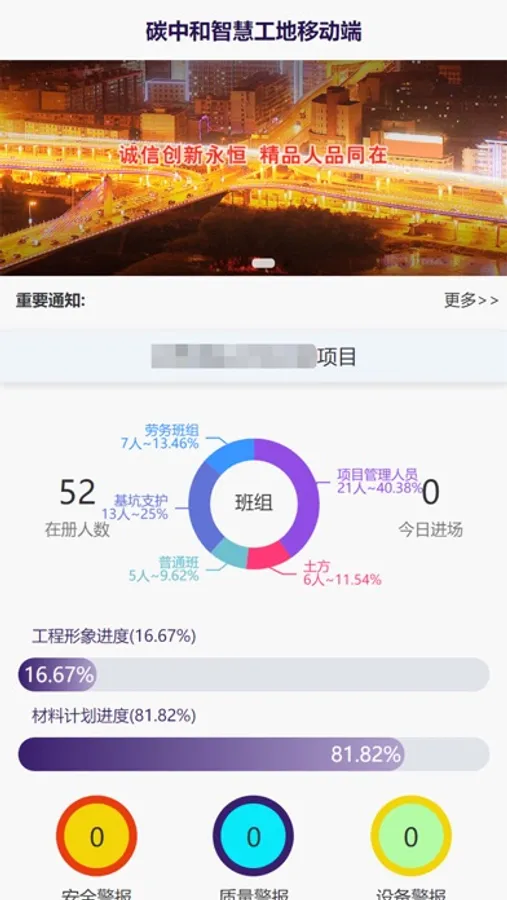 双碳智慧工地期望以尽可能低的成本达到数字化工地全时、全域、全员管控的目标,并符合节能减排、评优评奖的要求。平台包括智慧工地大屏展示系统、项目现场一体化管理系统、劳务实名制联动系统、BIM轻量化应用、视频监控集中远联平台、物联网集成网关等组件,包含了完整的质量、安全、物料、人员、环境、技术管理功能,可以实现“人、机、料、物、法、环”等关键要素的实时智能监控和管理。