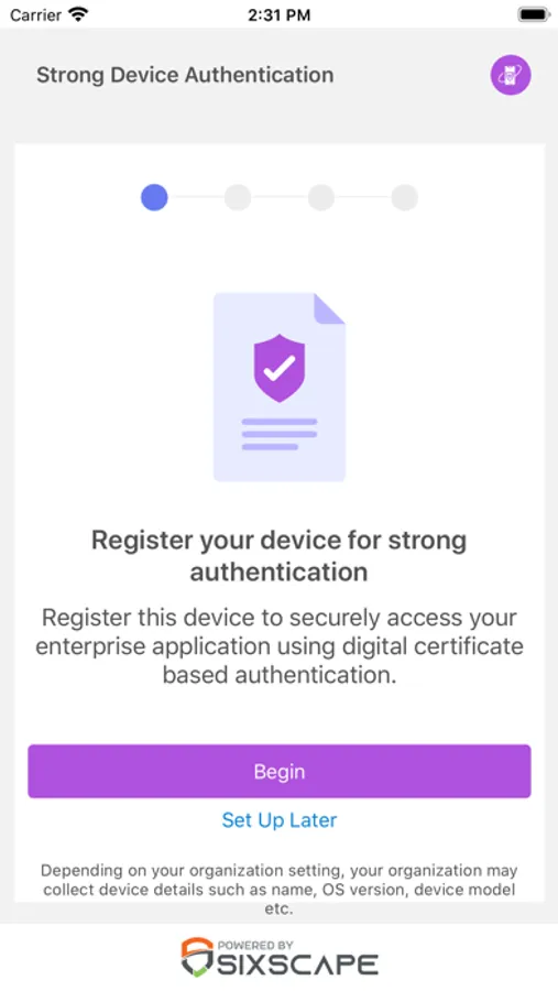 Secure Authentication Suite by Sixscape is a device certificate manager to allow enterprise users to securely access digital services using their device as a secure token to authenticate with certified digital identity. Avoid any risk of compromising your key - with Secure Authentication Suite the authentication private key never leaves your device and is protected with the highest security standards such as bio-metrics and hardware token. Secure Authentication Suite delivers on secure authentication with automation of certificate request, deployment and device certificate management with protection of your private key and allows you to achieve and maintain compliance.