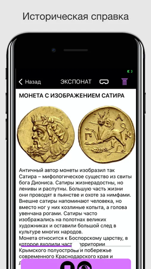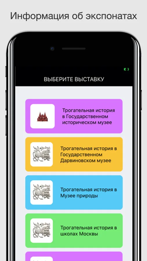 Приложения для получения информации об экспонатах проекта "Трогательная история". В приложении можно прочитать историческую справку об экспонатах, прослушать тифлокомментарий или просмотреть информацию с помощью сурдоперевода.