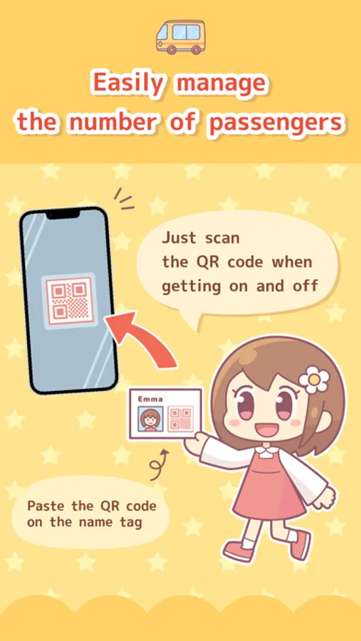 By holding up a QR, you can check the number of people on a school bus and the time they get on and off.