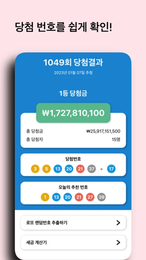 매주 진행하는 로또 당첨 결과를 확인할 수 있으며, 오늘의 추천 번호가 매일매일 업데이트됩니다!