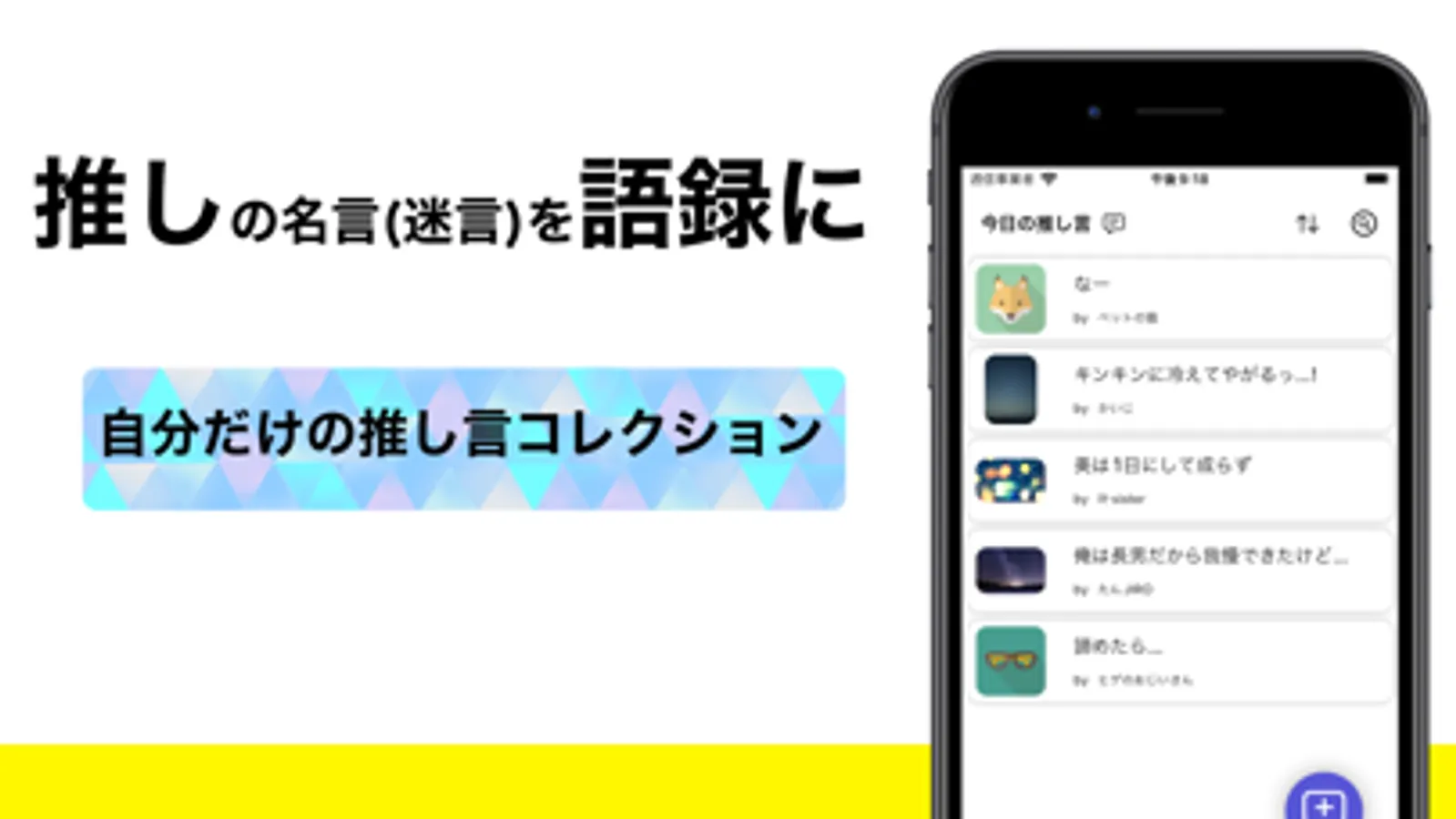 【推し語録】推し...アイドル、俳優、声優、アーティスト、漫画・アニメのキャラクター、家族、こども、ペット、先生、友人の名言(迷言)を一覧で管理、アーカイブできるアプリ!