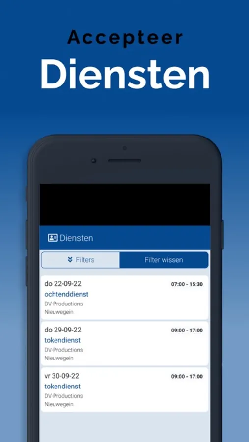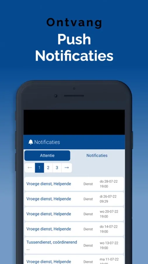 Relevante informatie komt via een push melding binnen op jouw app zodat je altijd up to date bent van de laatste informatie voor wat betreft de diensten. Ook wijzigingen worden direct zichtbaar in de agenda waardoor je altijd op de juiste plaats op het juiste moment aanwezig bent.