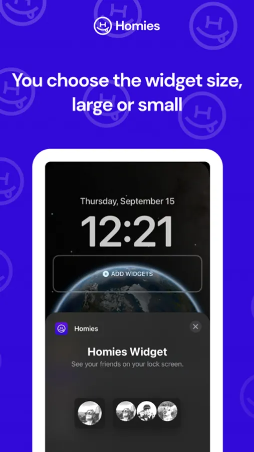 See your friends on your Lock Screen with Homies Widget! Homies lets you send and receive photos from your best friends right when you open your phone. You can also sketch on your photos or send chat messages to your friends.