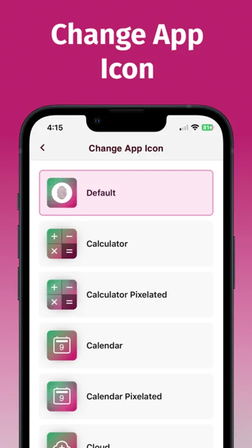 - Change the App Icon to make it even more private (available icons: calculator, calendar and more)