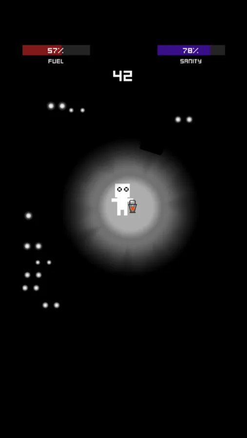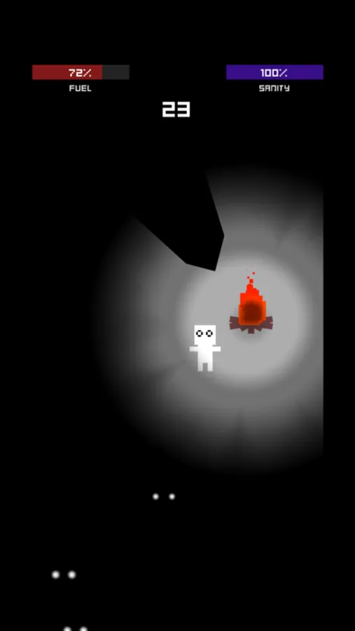 Extinguish Ghouls to retain your sanity. The lower your sanity, the more fuel you burn. Find fuel by wandering. If either sanity or fuel drops to zero, it's game over.