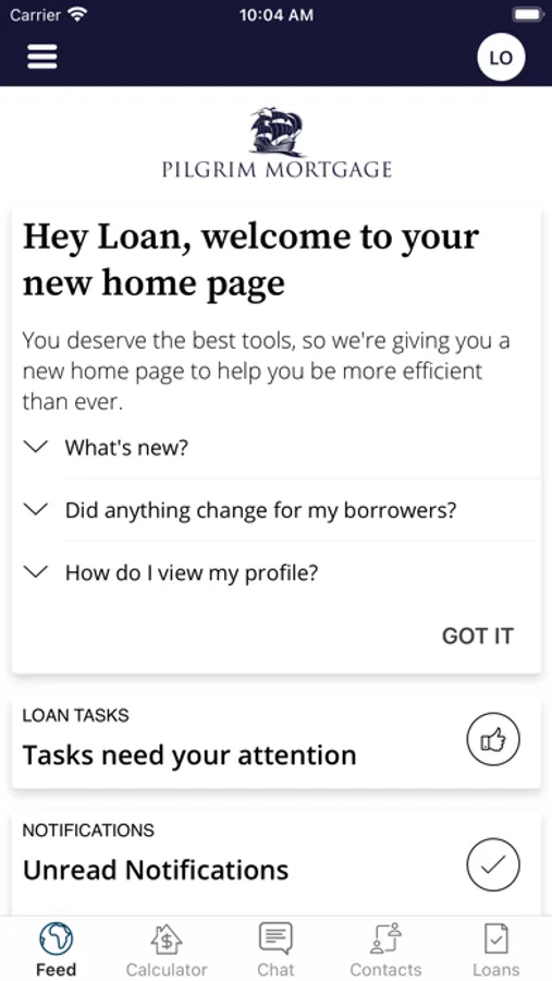 - Easily access contact information for your Pilgrim Loan Officer and real estate agent