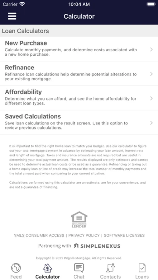 The calculations provided by the PilgrimNow App are useful in giving you an idea of what homeownership can mean for you. However, please be sure to contact your Pilgrim Loan Officer for a customized solution tailored to your specific financial situation, needs, and goals. Your Loan Officer can also assist you with any questions you have about your loan and the loan approval process.