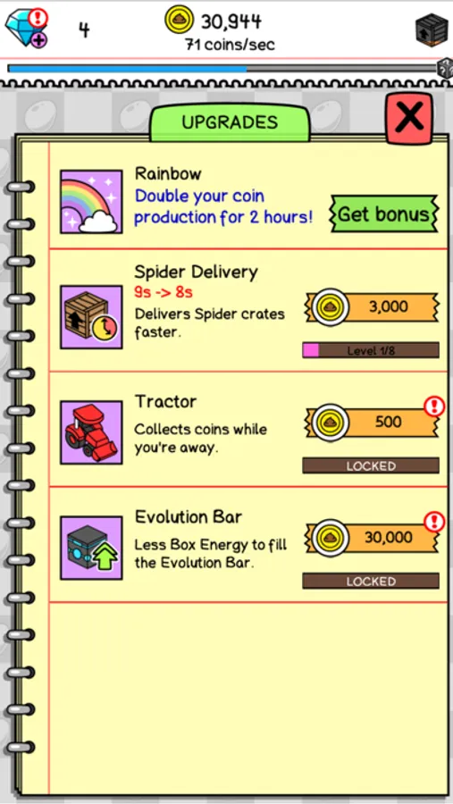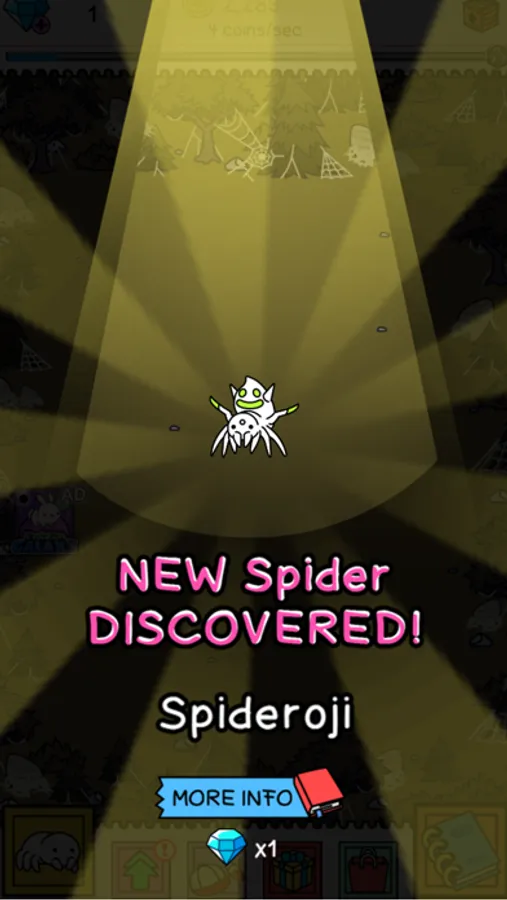 - Use spider eggs to earn coins, buy new creatures and make even more money