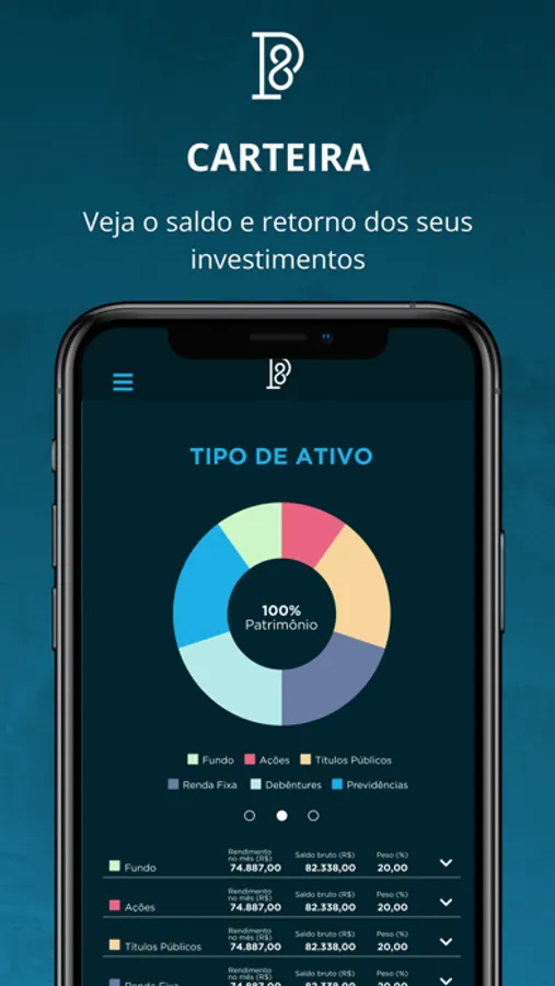 Neste aplicativo, quem é cliente de Consolidação de Carteiras no P8 Wealth Management pode solicitar acesso e acompanhar detalhadamente o desempenho de suas carteiras de investimentos diretamente pelo APP.