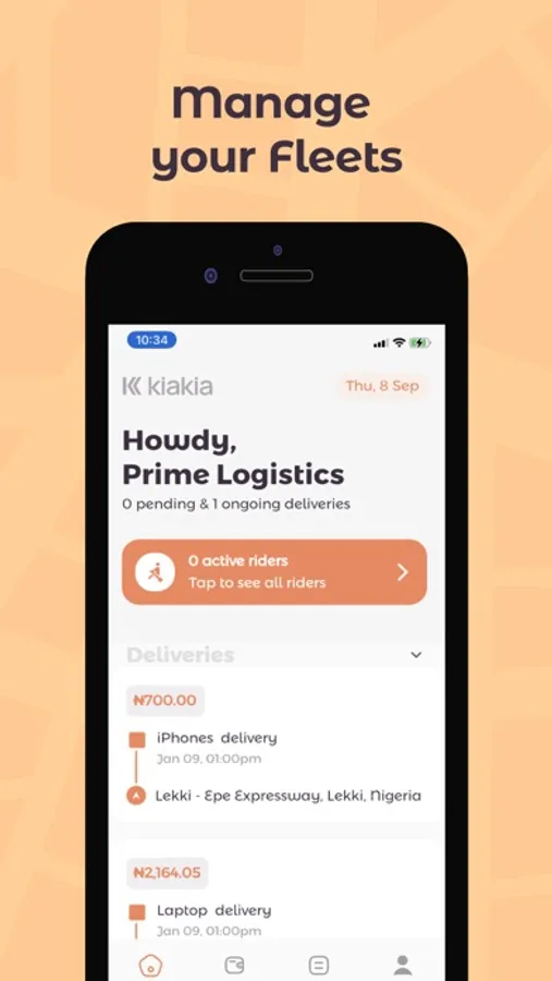 With the Kiakia fleet manager, you can onboard your delivery agents, monitor and manage their activities and get instant direct remittance of all their delivery activities with ease.