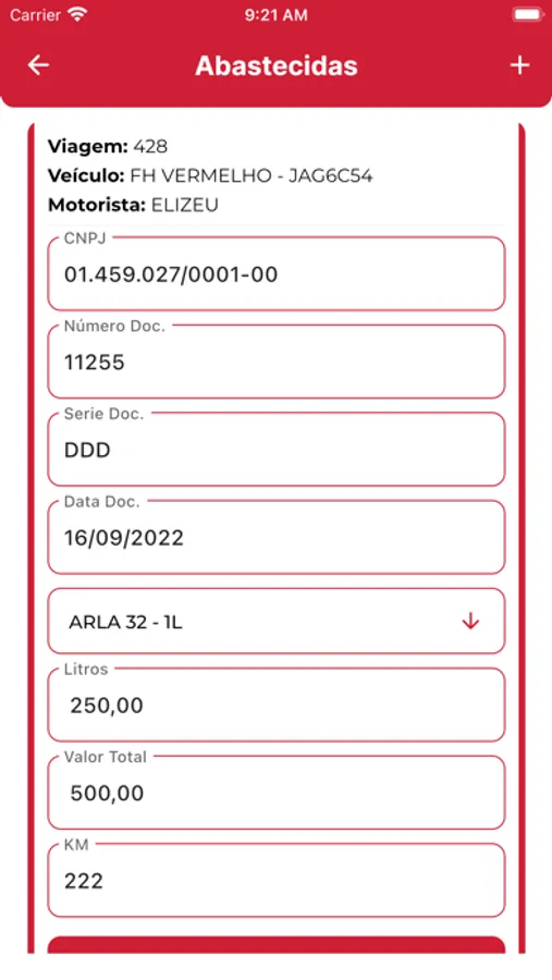 (lançamento de pedágio, oficina, alimentação, etc)