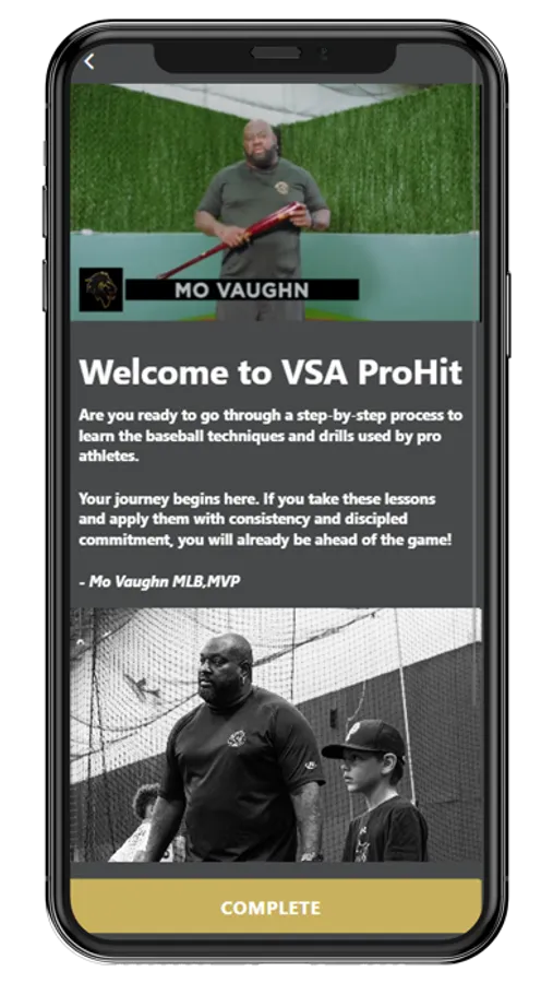 VSA PROHIT™ was developed by professional MVP, MLB player, Mo Vaughn. He developed this hitting program for baseball players who are looking to improve their swing, who want to take the guesswork out baseball technique, and who want to gain access to training used by professional athletes who have already made it into Major League Baseball. In this app, Mo Vaughn will take you through modules designed to teach you the process of developing a good swing at the plate, from technique to mindset.
