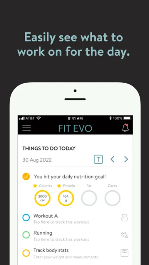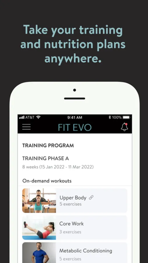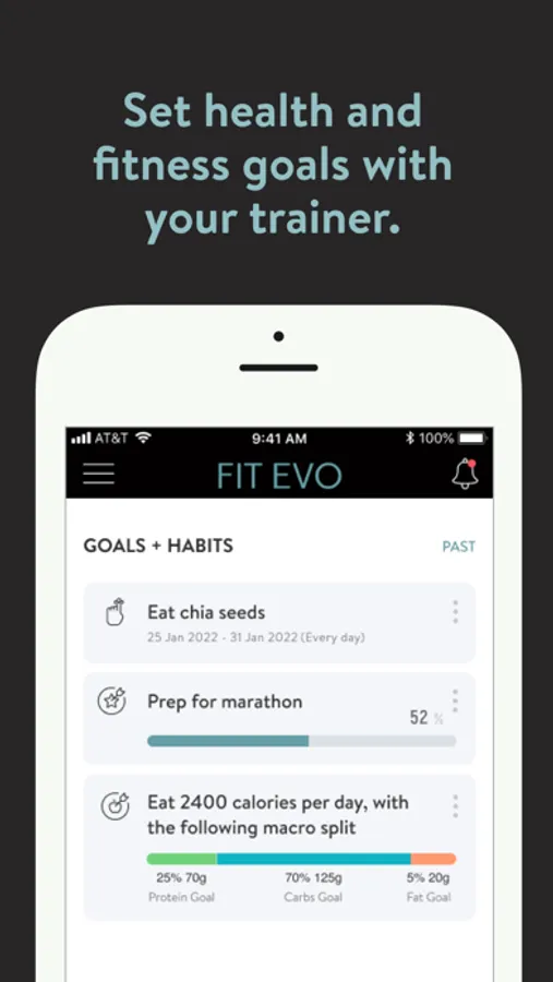 With the Fit Evo Online App, you can start tracking your workouts and meals, measuring results, and achieving your fitness goals, all with the help of your personal trainer.