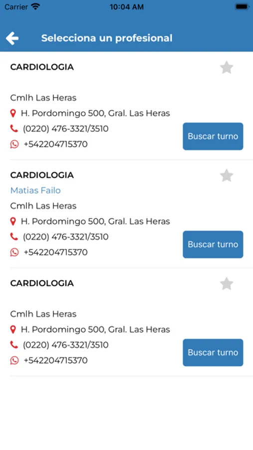 En esta aplicación encontrarás las especialidades y profesionales de nuestro staff profesional en cada sede, pudiendo obtener turnos en forma directa.