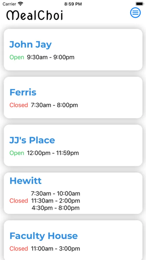 MealChoi is an essential university dining app where students can find information about the opening hours of each dining hall, which menus are being served, and the calories/nutrition facts of each menu.