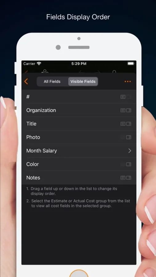 - More than fifty fields to choose from, including category, photo, simple and compound cost, text, date, percentage complete, etc. Costs can also be divided into two groups for comparison purposes.